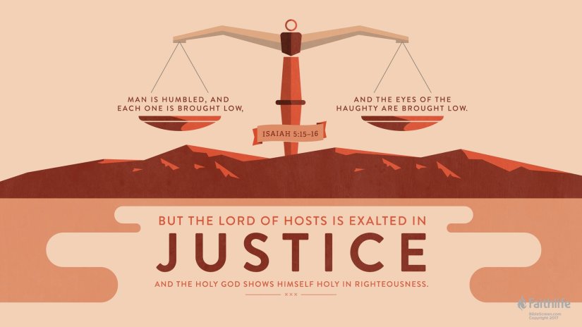 Isaiah 1:21 (RSB:ESV): justice … Righteousness. Justice means right relations between people. It is violated by murder, rebellion, stealing, and bribery (vv. 21–23). True justice will defend the cause of orphans and widows as much as the cause of those who can pay bribes and give rewards. The enemies of justice may even pass laws that facilitate their wrongdoing (10:1). Despite all such obstacles, God promises to restore righteousness to the earth (v. 26; 32:1; 33:5, 6; 42:1–4). The Reformation Study Bible